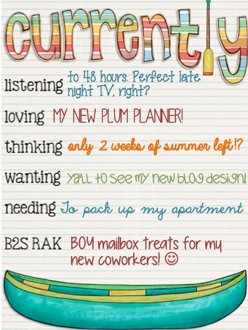 On the work front, I'm going into school tomorrow to get started on my office and to turn in my first comprehensive school counseling plan. [YIKES!]